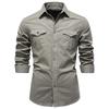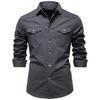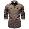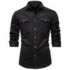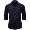 Men's -color Casual Fashionable Long-sleeved Button-down Work- Collar Shirt