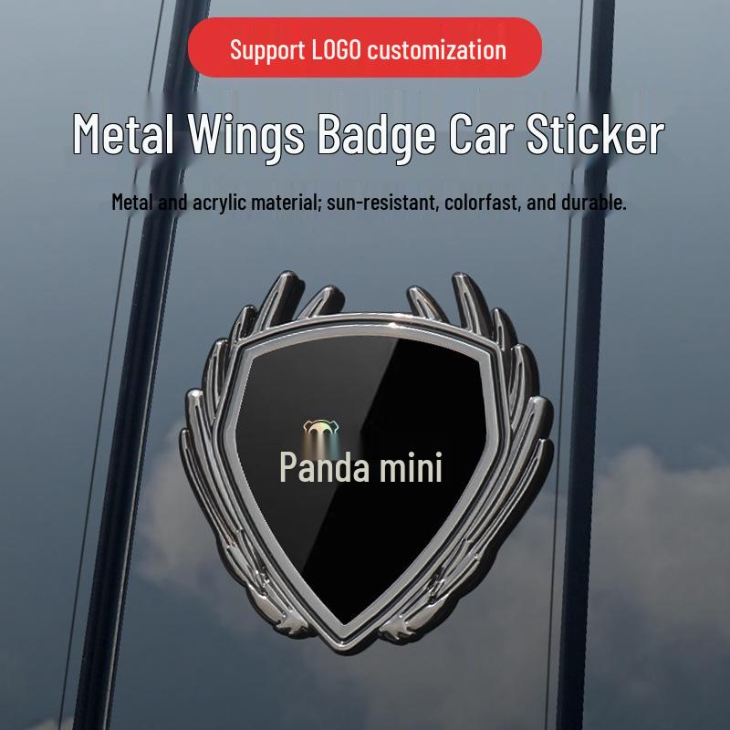 Metal badges, side window, and tailgate stickers for Geely Panda Mini Gokart cars.