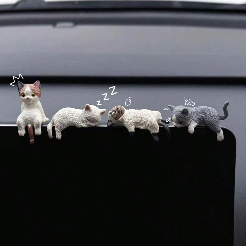 4 Resin Sleepy Cat Ornaments for Car Center Console Display