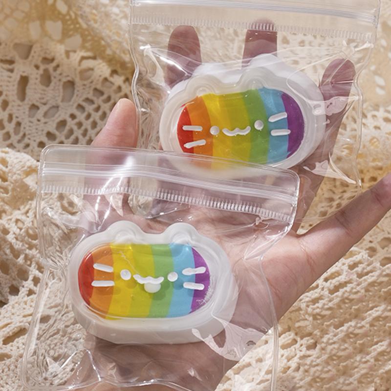 Kawaii Cheese Cat Squishy Rainbow Color Mochi Squishy