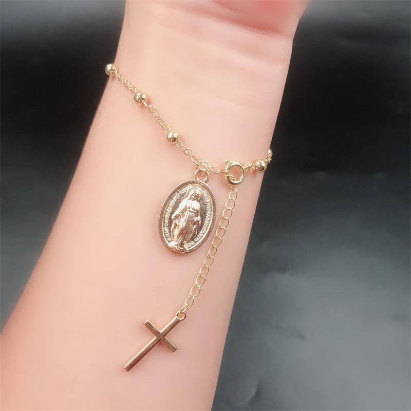 2025 New Fashion Women Religious Virgin Mary and Cross Pendant Beads Chain Bracelet Women Party Virgin Mary Adjustable Bracelet