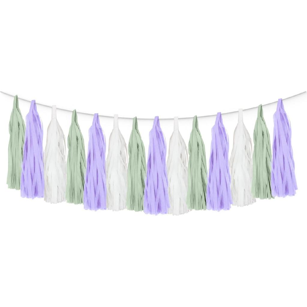 Dusty Sage Green Purple Lilac Lavender Party Decorations Paper Tassel Garland Banner Fringe Streamers Wildflower Fairy Birthday Baby Shower Wedding