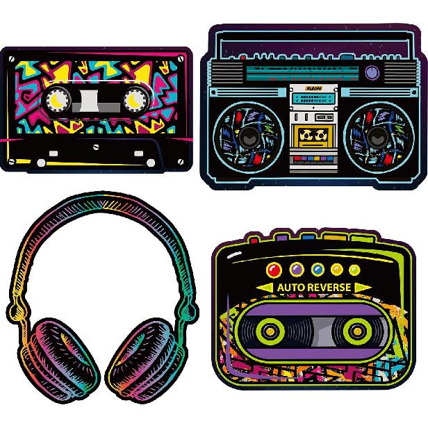 Outus 12 Pieces 80's Cassette Tape Party Decorations Retro 80's Cutouts Large Cassette Player Cutouts Headphones Radio for 1970s Party Posters Decor
