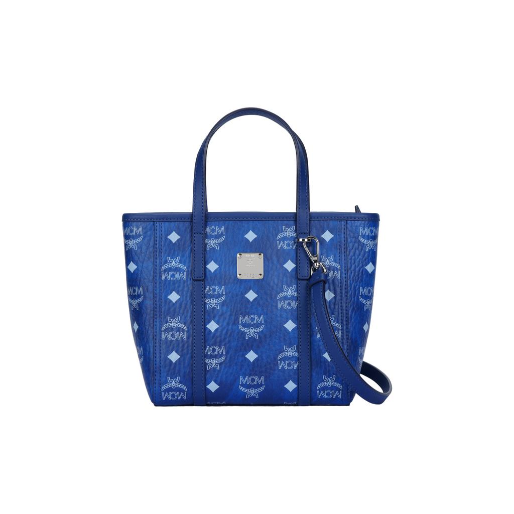 MCM Silver Tone Metal Hardware Faux Leather Tote Shopping Bag Mini Women tote bags Blue MWPFAMT081F001