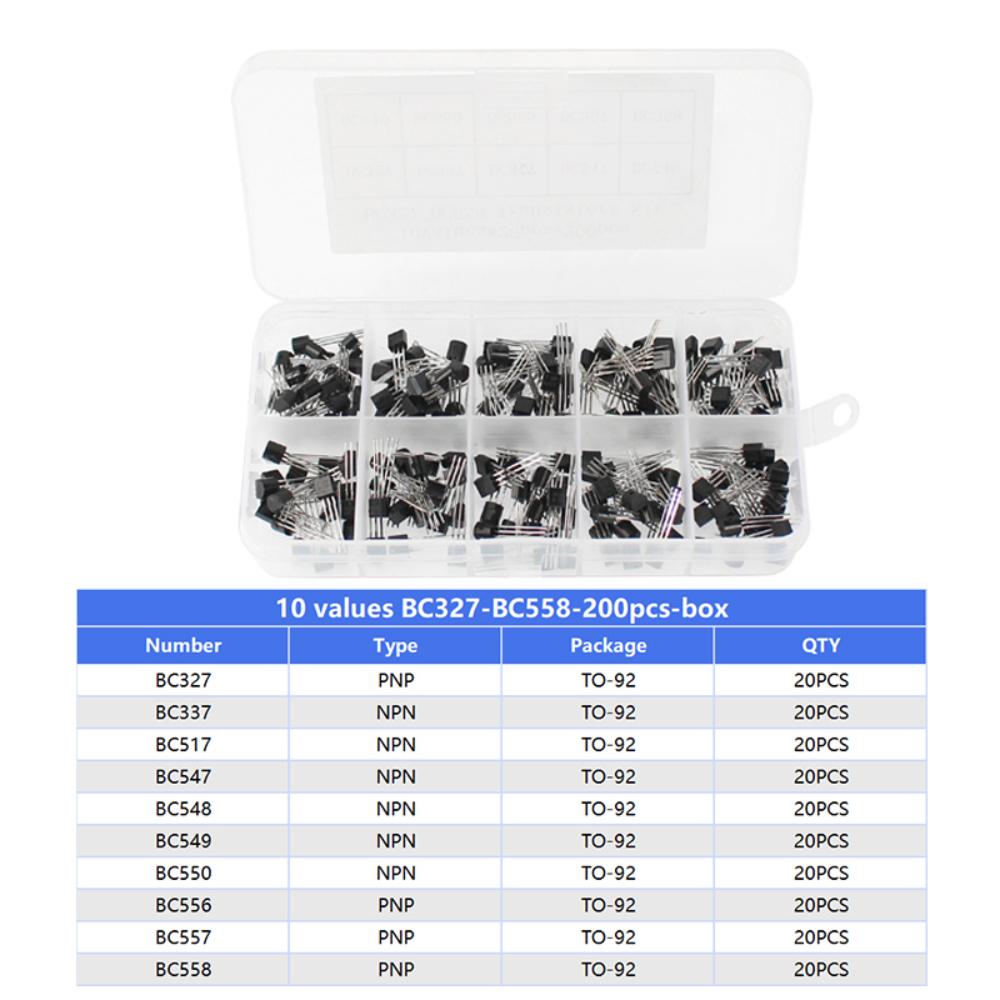200PCS/Box Transistor Assorted Kit 2N2222 2N3904 2N3906 BC337 BC547 BC557 S8050 S8550 10 values PNP NPN Transistors Triode TO92 — acquista al miglior prezzo sul negozio online Joom