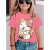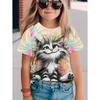 Kawaii Cat Girls Clothes 3D Print Children's T-Shirt O-Neck Pullover Girl Short Sleeve T-Shirt Comfortable Children's Clothing