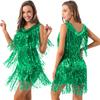 Vestito da ballo latino da donna con scollo a V, senza maniche, con nappe e paillettes scintillanti, per sala da ballo, samba, tango