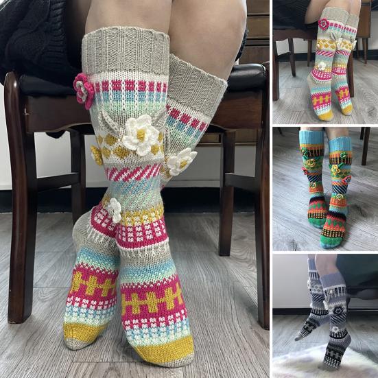 Calzettoni a Maglia Retro Donna Calzettoni Al Ginocchio all'Uncinetto con Fiori 3D Calzini Caldi Colorati Scaldamuscoli per Stivali Ragazze Indispensabili per Casa e Strada — acquista al miglior prezzo sul negozio online Joom