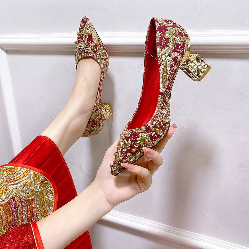 French main wedding shoes wedding shoes new red wedding dress evening bridal shoes red show heji high heels Chinese style