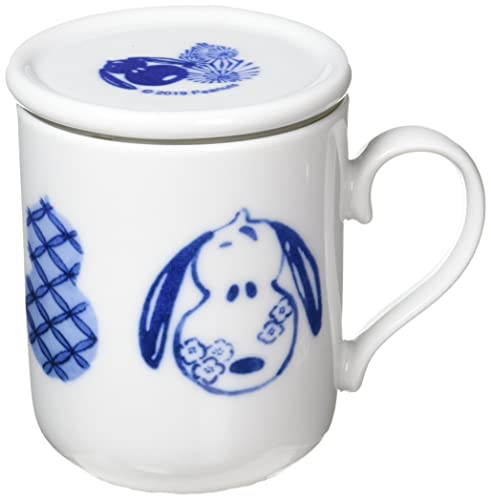 PEANUTS" Tea Mate Mug with Tea Strainer, Approx. 300ml, Japanese Pattern, Blue and White Gourd Design, Made in Japan, SN84-12