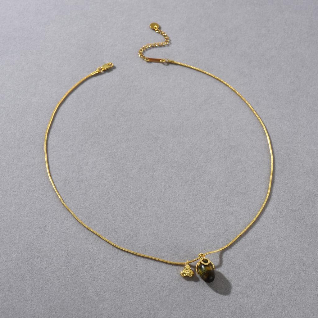 Premium Light Luxury Brass Plated 18K Real Gold Inlaid Amber Stone Pendant Long Chain Niche Fashion Personalized Necklace