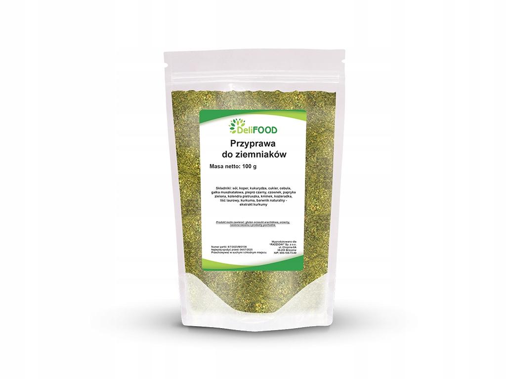 POTATO AND FRENCH FRIES SEASONING 100G Potatoes are one of the most commonly consumed vegetables in Poland. This is no surprise, as they are not only delicious but also full of health benefits. They contain a range of valuable vitamins, as well as significant amounts of essential minerals, including potassium. Therefore, they can easily be part of a balanced diet. Just prepare them properly. Instead of a fatty sauce or copious amounts of butter, season your potatoes with an aromatic blend of herbs. This will give them a distinctive flavor. DeliFOOD's baked potato seasoning is a unique blend created with all potato lovers in mind. It contains only natural ingredients that contribute to good health and well-being. Grilled Potato Seasoning – Ingredients and Key Nutritional Values Potato seasoning is a unique DeliFOOD product, whose formula is based solely on natural ingredients. Therefore, this blend contains no unnecessary dyes, preservatives, or flavor enhancers. This potato seasoning boasts a unique blend of herbs that are perfect for both baked potatoes and vegetable fries. And what ingredients are found in DeliFOOD potato seasoning? First of all: Fennel – it's one of the herbs we probably most associate with delicious potatoes. That's why it couldn't be missing from our blend. Fennel has been used in Polish cuisine for generations. However, it's worth knowing that it actually originates from the Mediterranean region. This herb is incredibly aromatic, thanks to the volatile oils it contains. Interestingly, the properties of fennel were appreciated in ancient times, and the first mentions of it were found on Egyptian papyri. Secondly: NUTMEG – is a spice with a distinctive, spicy flavor. It grows naturally in the Caribbean Islands, Malaysia, and Sri Lanka. It is there that nutmeg holds a particularly important place in herbal medicine. This is no surprise, as it contains a whopping 16% of health-promoting essential oils. Interestingly, nutmeg is also an excellent source of B vitamins and certain minerals, including magnesium, iron, and zinc. Thirdly: GARLIC – without which it's hard to imagine the taste of baked potatoes. Although it only appeared on Polish tables in the Middle Ages, today it is an irreplaceable element of traditional cuisine. It's worth knowing that garlic, in addition to its characteristic flavor, also contains a range of valuable nutrients. Among these, phytosterols and flavonoids deserve special attention. It's also important to remember that garlic is an excellent source of vitamins and minerals, which have a highly positive effect on our health. Fourthly: CORIANDER – native to the Mediterranean region and the Middle East. This plant is widely used in cuisines around the world. This is no surprise, as it is characterized by a mild flavor and pleasant aroma. Interestingly, cilantro is not only delicious but also incredibly healthy. It contains valuable essential oils and antioxidants. Therefore, it can be easily incorporated into a healthy diet full of vegetables and fresh herbs. Fifth: PARSLEY – one of the most commonly used vegetables in Polish cuisine. Both its leaves and roots have an excellent flavor that pairs well with both meat dishes and vegan cuisine. Parsley, like cilantro, is a great source of nutrients valuable for health. It contains significant amounts of iron and vitamin C. Sixth: CARAWAY – belonging to the celery family. This plant grows naturally in Europe, Asia, and North Africa. Interestingly, numerous caraway crops can also be found in Poland. For generations, caraway has held an important place in both traditional Polish cuisine and modern phytotherapy. Caraway is a good source of essential oils, as well as flavonoids, coumarins, and protein compounds. It also contains significant amounts of vitamin A. Seventh: HOT PEPPER – characteristic of dishes from the South American region. Its spicy flavor can transform any dish in just a few moments. It's also worth knowing that hot peppers are an irreplaceable source of capsaicin – an antioxidant that has a highly positive effect on both our health and a slim figure. Eighth: FENUGREGATE – an annual plant belonging to the legume family. Its aromatic seeds are primarily used in both cooking and herbal medicine. They are a treasure trove of valuable nutrients, including vitamins and minerals. Fenugreek seeds contain, among others: vitamin A, B vitamins, vitamin C, potassium, phosphorus, magnesium, calcium, and iron. Ninth: BAY LEAF – an irreplaceable ingredient in all soups. It's worth knowing that these aromatic leaves are also a valuable source of ingredients with skincare properties. That's why bay leaves are used not only in the food and pharmaceutical industries, but also in cosmetics. Tenth: TURMERIC – a natural coloring agent in DeliFOOD's potato seasoning. This spice has held an important place in Indian cuisine for centuries. Interestingly, due to its high antioxidant content, it is also classified as a prestigious "superfood." Additionally, the baked potato seasoning contains: small amounts of salt and sugar, corn, onion, black pepper, and green bell pepper. Discover the most valuable health properties of the ingredients contained in DeliFOOD's baked potato seasoning Baked potato seasoning is a source of valuable ingredients rich in valuable vitamins and minerals. Therefore, incorporating it into a balanced diet, combined with regular physical activity, can improve our health and daily well-being. It turns out that thanks to the large amount of antioxidants found in turmeric, dill, and chili peppers, potato seasoning may have a preventative effect on cancer. Antioxidants are responsible for combating the harmful effects of free radicals on our bodies. Additionally, they slow down the skin aging process and ensure a youthful appearance for years to come. The high potassium content found in the herbs used in potato seasoning also plays a significant role in our health. This 