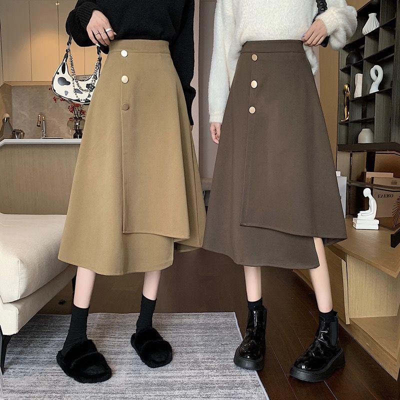 Women's High Waist Woolen A-Line Skirt - Autumn/Winter 2025 Collection, Versatile Mid-Length Irregular Slimming Design — acquista al miglior prezzo sul negozio online Joom