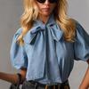Retro Loose Collar Lace-Up Denim Shirt with Bow for Women - Style 89265 — acquista al miglior prezzo sul negozio online Joom