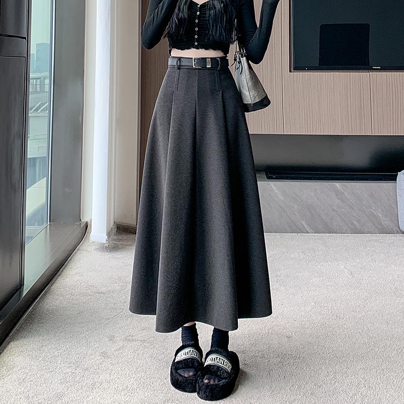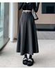 2025 Autumn/Winter Women's High-Waist Grey Wool Pleated Mid-Length A-Line Skirt