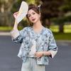 Indigo Hand-dyed V-neck Women's Cardigan with Stand Collar & Drawstring Hem for Sun Protection — acquista al miglior prezzo sul negozio online Joom