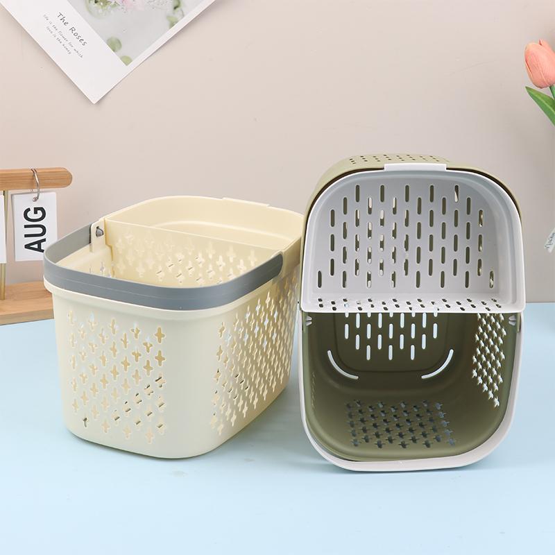 Cesto Organizer in Plastica con Manici Drenante Contenitore per Articoli da Toeletta Cesto Impilabile per Bagno Cucina Campeggio Palestra