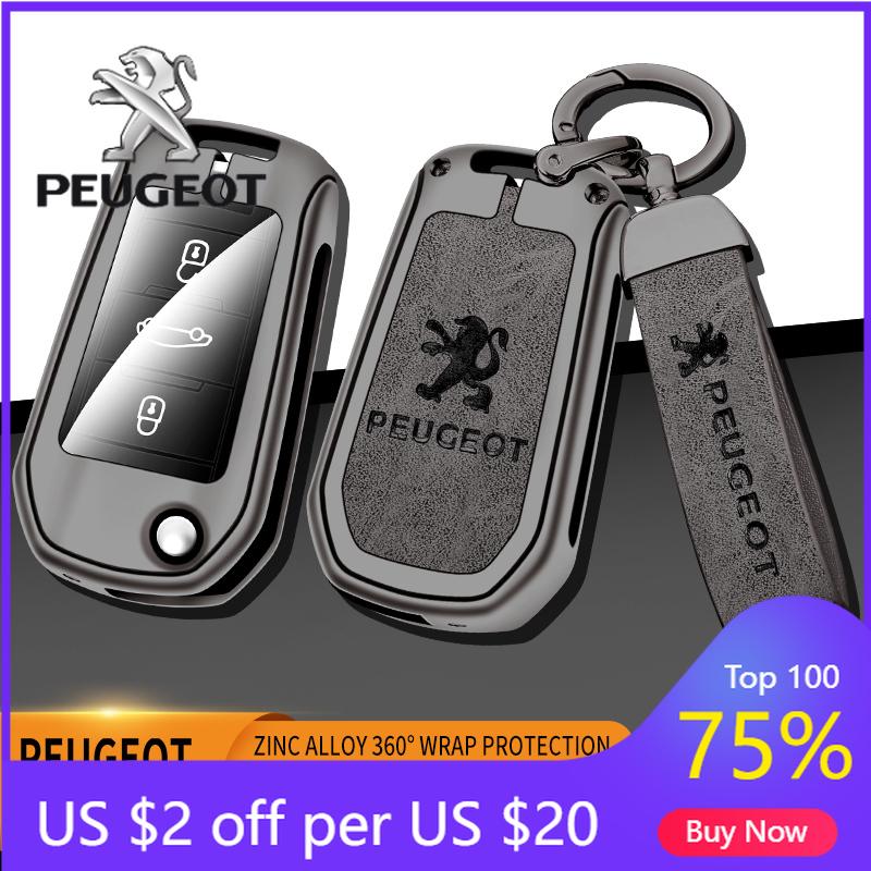 2026 Hot Car Sticker Zine Alloy Leather Car Smart Remote Key Case Shell Cover Protection For Peugeot 208 2008 301 308 508 5008 R