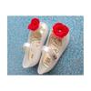 - Design di Moda Perle Catena Sandali alla Caviglia da Donna Colore Misto Fiori di Seta Punta Aperta Tacco Quadrato Scarpa da Matrimonio Banchetto