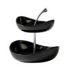Double Layer Fruit Plate Multi-Layer Ceramic Fruit Bowl with Metal Stand Dishwasher Safe Corner Kitchen Countertop Organizer for Fruits Snacks Cakes