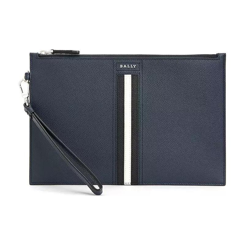 Bally Letter Logo Zip Closure Calfskin Clutch Men clutch Navy-Blue 6232049