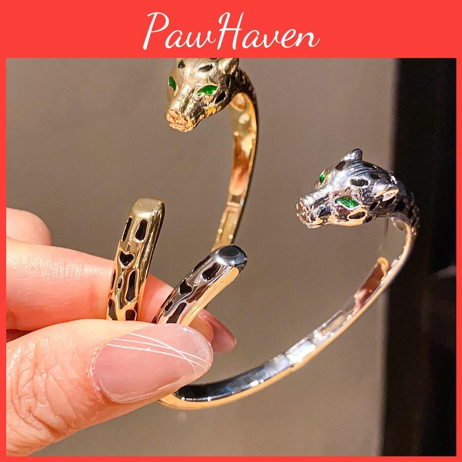 This fashion bracelet features a sleek open cuff design crafted from durable copper, with a genuine gold-plated finish highlighting a striking leopard motif. Measuring approximately 6 inches in length, it offers a refined accessory for daily wear. Ideal for enhancing casual or office outfits, it resists tarnishing and requires only a wipe with a soft cloth for maintenance.