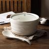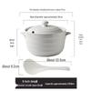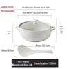 Double Ear Ceramic Soup Bowl Set with Lid - Microwave Safe, Includes Large Spoon and Tureen, Pure White, Creative Design (8 Bowls)
