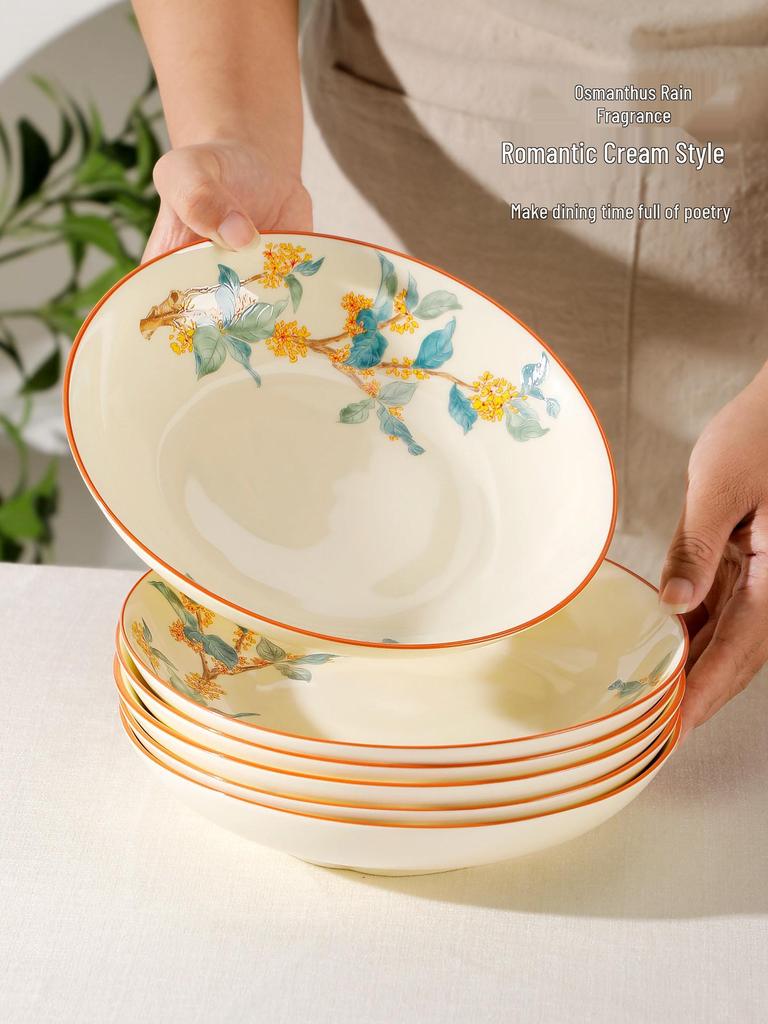 Golden Autumn Osmanthus Ceramic Dinner Plate - Chinese Style Deep Soup and Round Dish 2025 Collection