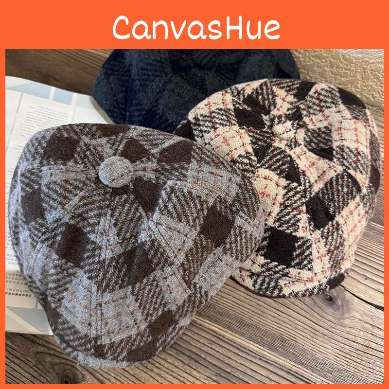 Classic Plaid Blend Womens Newsboy Cap With Warm Breathable Fabric For Fall Winter Style