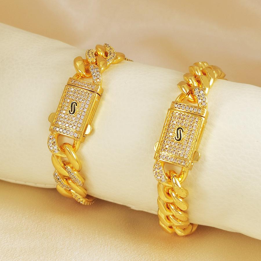 European & American Cuban Bracelet: Diamond Inlaid 24K Gold-Plated Chain for Men & Women in Hip Hop Style