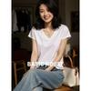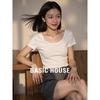 Basic House Women's Slim-Fit Tencel Wool Semi-High Neck Short Sleeve T-Shirt