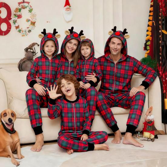 Questo set pigiami natalizi per la famiglia presenta un classico motivo a tema natalizio con una maglia a maniche lunghe e pantaloni elasticizzati a quadri rossi e neri, ideale per le festività natalizie. Rimani al caldo e comodo con il top a maniche lunghe e i pantaloni morbidi dotati di elastico in vita e polsini in maglia a coste.