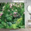 Garden Flowers Scenery Shower Curtains Natural Rustic Pink Floral Plant Modern Wall Hanging Polyester Bathroom Curtain Decor Set