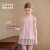 Little Naive Summer Girls' Printed Mesh Two-Piece Split Swimsuit