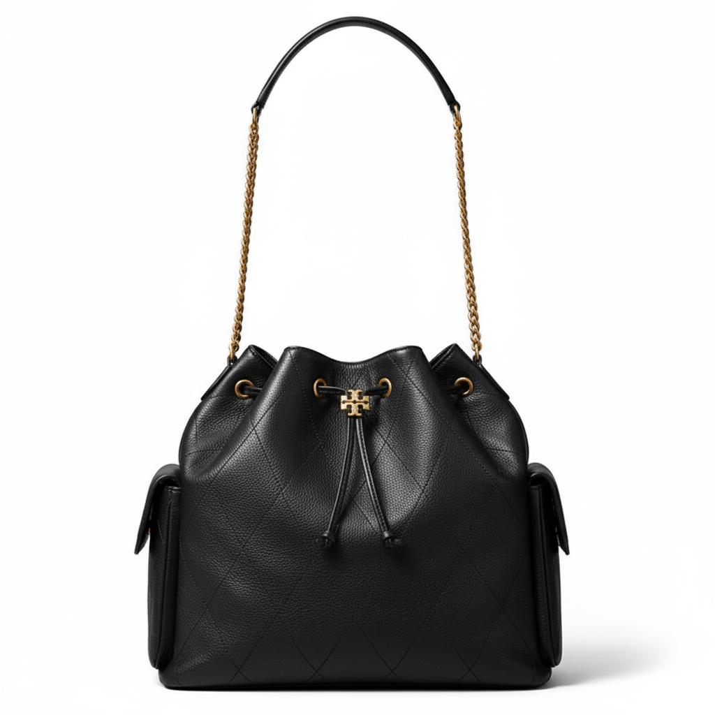 Tory Burch Charlie Drawstring Closure Leather Shoulder Bag Large Women shoulder bag Black 185830-001