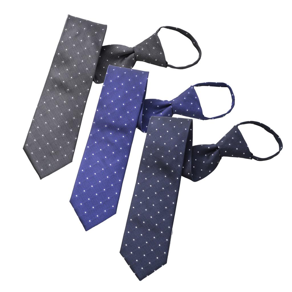 [Businessman Support] One-touch tie with dimple, zip-type easy tie, set of 3, blade width 7.5cm, Free Size, h-123set, polka dot pattern, zip-h123set