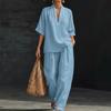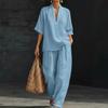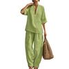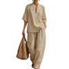 Completi Estivi da Relax a 2 Pezzi per Donna con Scollo a V, Manica Corta e Pantaloni a Gamba Larga, Set Casual per Viaggi e Vacanze