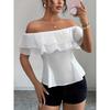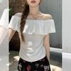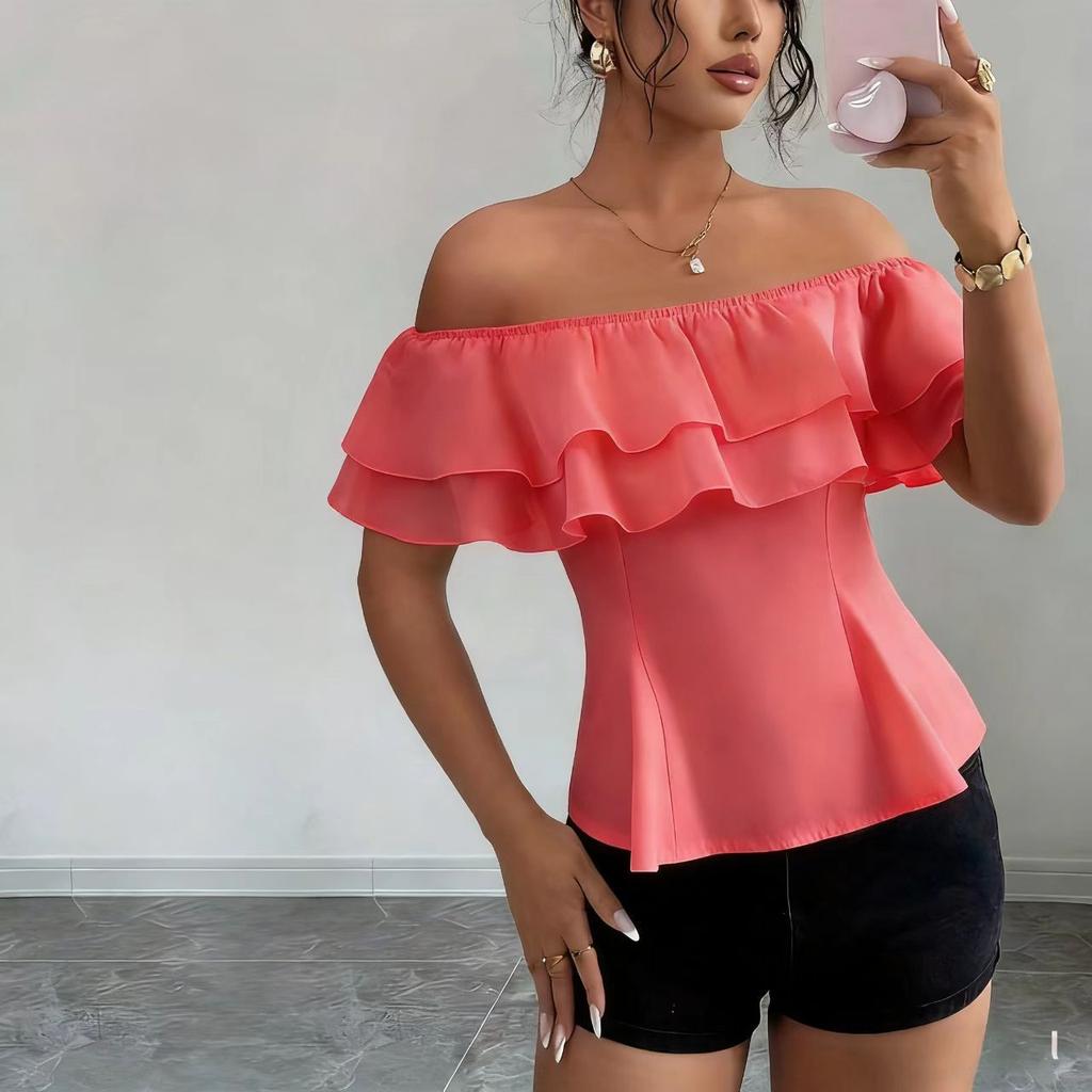 Summer New Style Fashionable One-shoulder Ruffled Chiffon Top with Frills - A Sexy Short-sleeved Top with Exposed Shoulders