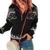 Women's Autumn and Winter Fashion Sweater Standing Neck Geometric Pattern Zipper Long Sleeve Loose Casual Top