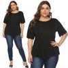 2024 New Oversized Women's T-shirts Plus Size Hollow Out Wavy T Shirt Female O-neck Short Sleeves Tees Pink Tops Casual Factory Sell