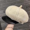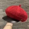 Simple big head circumference knitted beret women's spring and autumn British retro face small octagonal hat PU newsboy hat