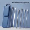 6Pcs/Set PU Leather Case Earpick Sticks Earwax Remover Ear Picker Cleaning Cleanser Spoon Curette Ear Protector Wax Removal Tool