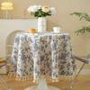 Vintage Round Tablecloth Blue Floral Farmhouse Washable Table Cover for Dining Picnic Indoor Outdoor Kitchen Tabletop Decoration