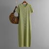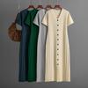 Summer Women's Casual V-Neck Solid Colour Short Sleeve Waist Slim Knit Long Dresses
