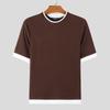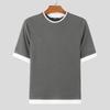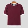 INCERUN Summer Men O Neck Short Sleeve Stitching Rib Skinny Tops T-shirts