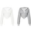 Spring and Autumn Hooded Short Fishbone Design Top for Women with High Waist Small Slim Long Sleeve T-shirt Cardigan