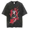 Retro T-Shirts For Men 3d Japanese Samurai Sword Print Male Washed Clothing Street Short Sleeved Tees Oversized T-Shirt
