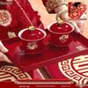 Chinese Double Happiness Red Wedding Tea Set,Porcelain Wedding Tea Set,Beam Handle, Comfortable to Hold,for Newlyweds, Friends Chinese Traditional