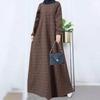 გააუმჯობესეთ თქვენი გარდერობი ამ ქალის ბამბის თეთრეულის პლედის გრძელმკლავიანი მაქსი კაბით, რომელიც შექმნილია ყოველდღიური, თავისუფალი სტილისთვის და იდეალურია როგორც გაზაფხულისთვის, ასევე შემოდგომისთვის.. დამზადებული ბამბისა და სელის სუნთქვადი ნაზავისგან, ეს კაბა გთავაზობთ კომფორტსა და სტილს, რაც მას იდეალურ არჩევანს ხდის სხვადასხვა შემთხვევებისთვის.. კუბოკრული პრინტი კლასიკური ელეგანტურობის ელფერს მატებს, ხოლო გრძელი სახელოები და მაქსი სიგრძე მოკრძალებულ, მაგრამ მოდურ იერს ქმნის.. იქნება ეს მეგობრებთან ერთად გასეირნება თუ სახლში დასვენება, ეს კაბა დაგეხმარებათ, რომ ყოველგვარი ძალისხმევის გარეშე გამოიყურებოდეთ ელეგანტურად.