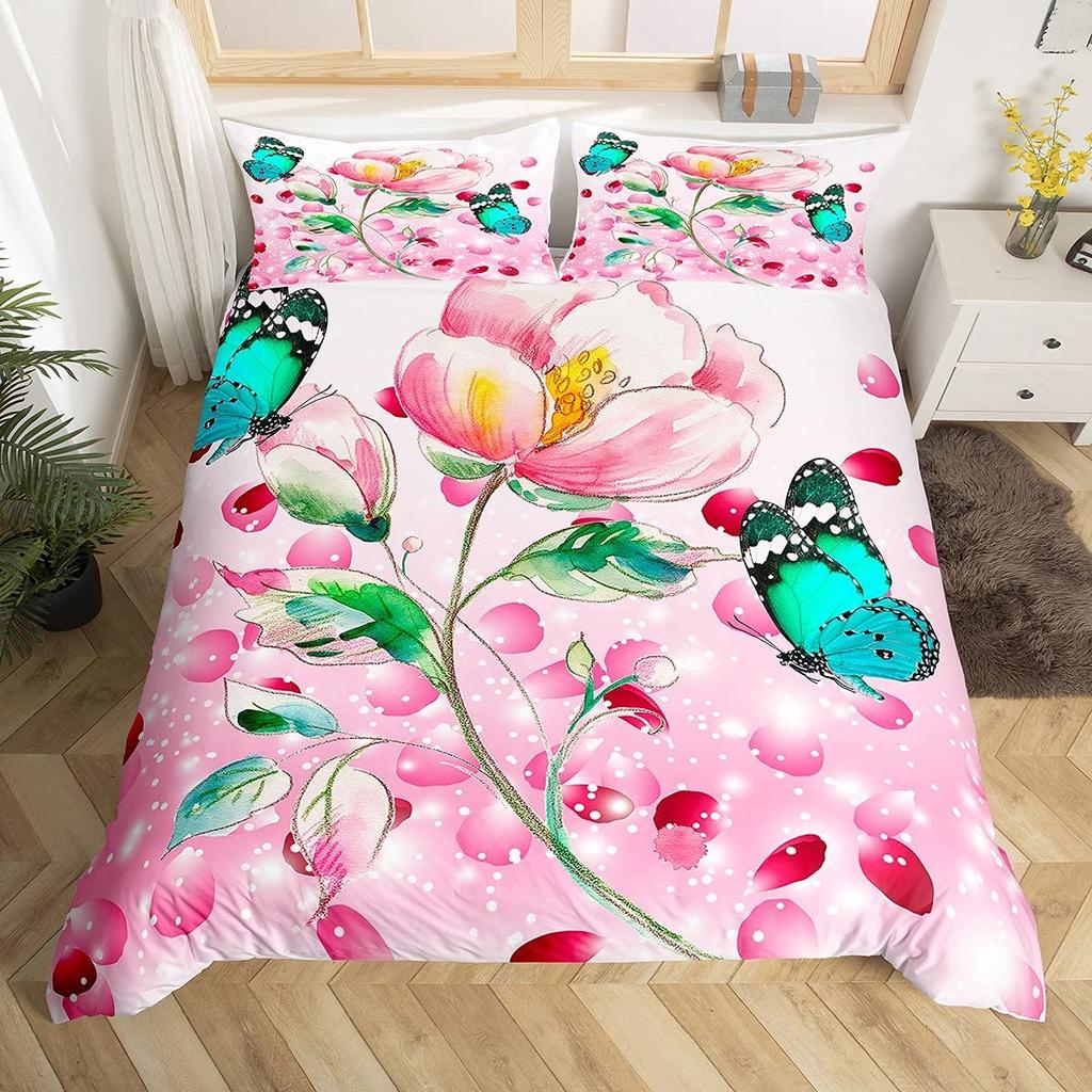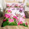 Butterfly and Flower Duvet Cover Girls Dream Animals Floral Comforter Cover Microfiber Romantic Theme Garden Flowers Bedding Set